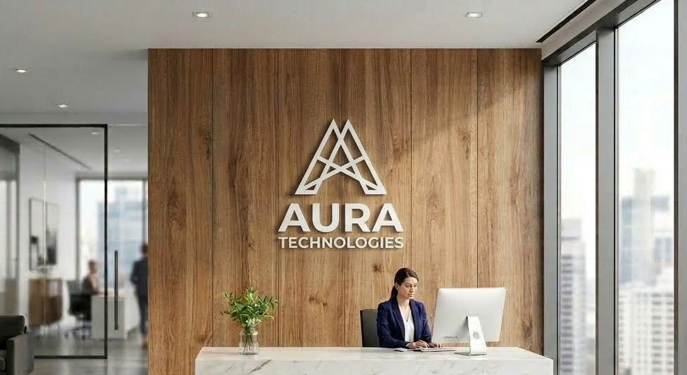 Upload your logo or type your text. We'll generate a photorealistic render showing exactly how your sign will look in a premium office environment.